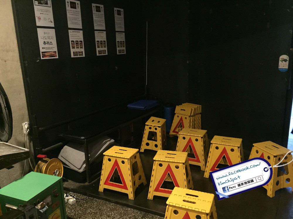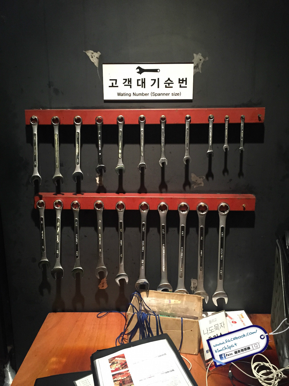 走工業風的 철든놈 成熟男的烤肉箱,連等叫位的坐位牌也好重口味,哈哈。