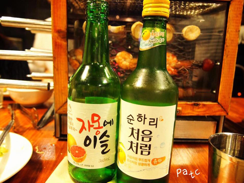 當然少不了這陣子在韓國十分流行的果味燒酒,總共有三款: 柚子,西柚,藍莓 (不過由於友人說藍莓有點像藥水,所以就無點嚕)