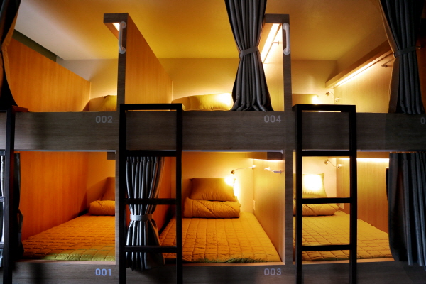 Dormitory Room又是我喜歡的房型,是私隱度較高像日本膠囊旅館的那種,每張床有各自的床頭燈、插頭及布簾等等,即使較早睡或晚睡者,拉起布簾,也不怕影響到別人。