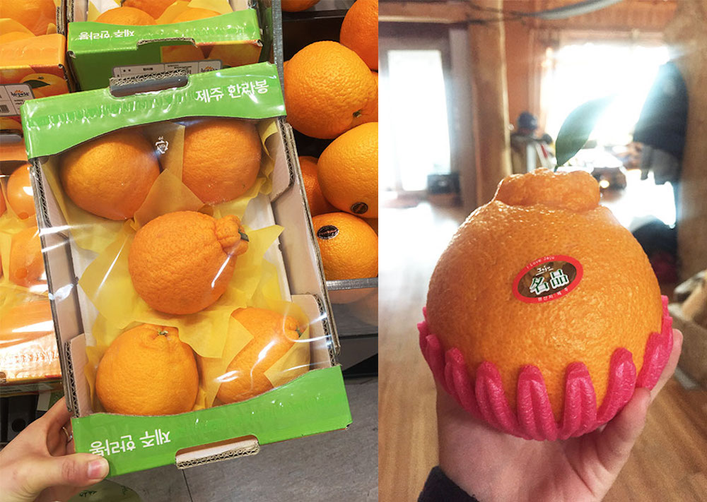去日韓旅行,少不免都喜歡買水果回港,貪它們又大又甜又多汁。除了韓國草莓外,只屬韓國濟洲島限定的大橘子也是必買水果之一。濟洲大橘子原名為 한라봉 Han-la-bong,是韓國的高級水果,中秋春節送禮是也常常見到濟洲大橘子禮盒。雖則外貌跟普通橙沒甚麼兩樣,但認著頭頂頂突起的小塊才是Han-la-bong,味道每一個也是超級鮮甜多汁 (無例外!),果肉分明,強推。