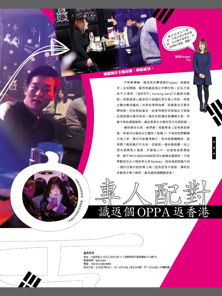 右上角有 "駐韓blogger Pat" 的小貼士,大家千萬不要誤會我是常去 hunting bar 的人...都是工作需要啊!!!!(誤)