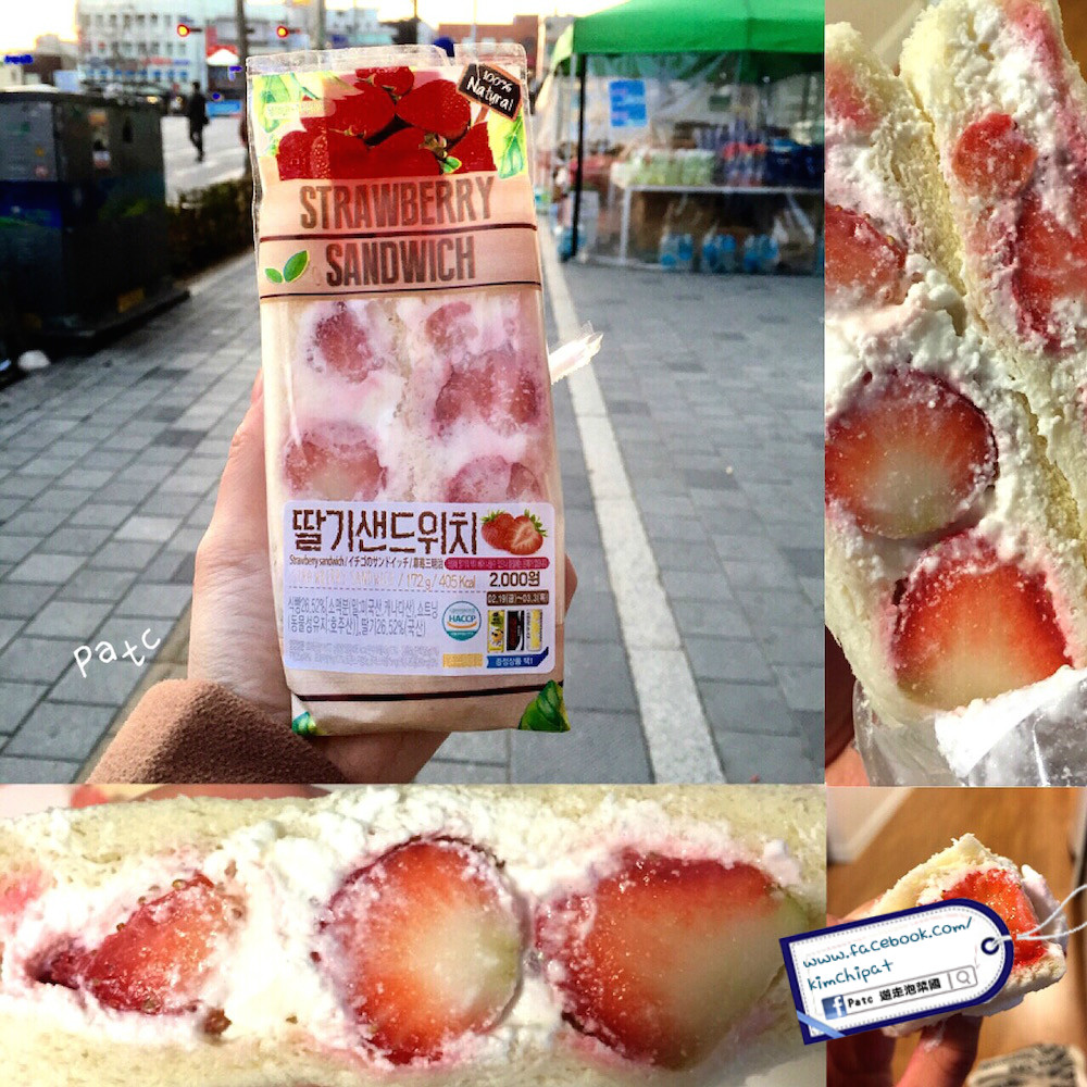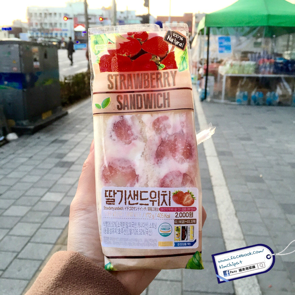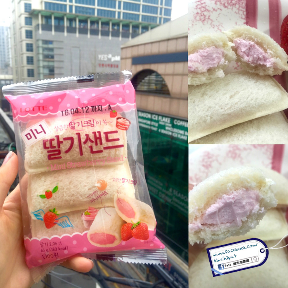 韓國很多這款小小有餡料的三文治,有花生醬、朱古力醬、果醬等等,而在草莓季,當然少不了草莓忌廉!最先雖然是給包裝吸引,但吃後忌廉尚算幼滑,味道有點甜但配上白麵包就剛剛好,小小的一份三件做早餐或下午茶小吃亦可。