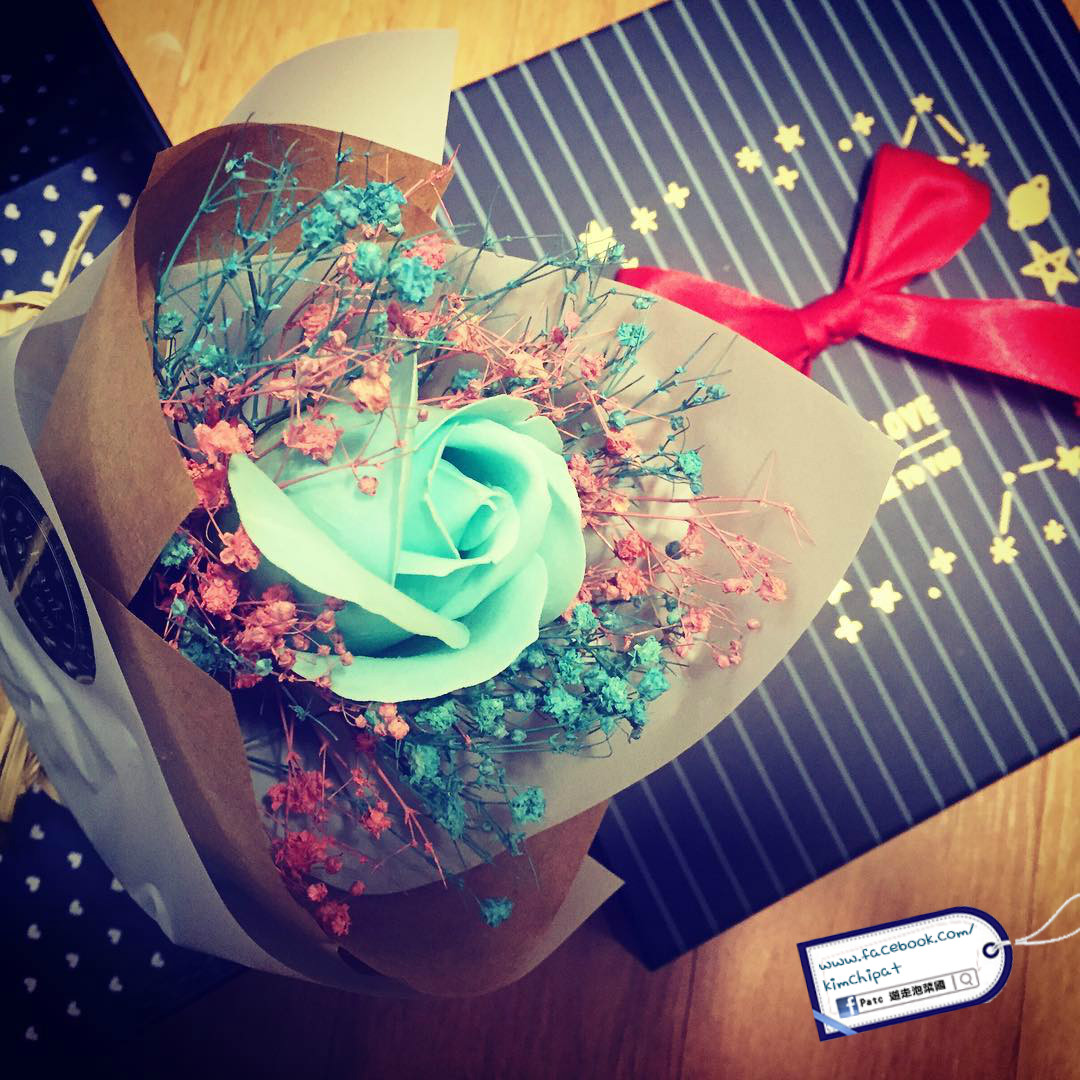 那天買了這個 Tiffany Blue x Baby Pink 保鮮花,店主說放在乾燥地方內可以保存至少2年,盛惠9000krw,拿到香港後也完整無缺呢。