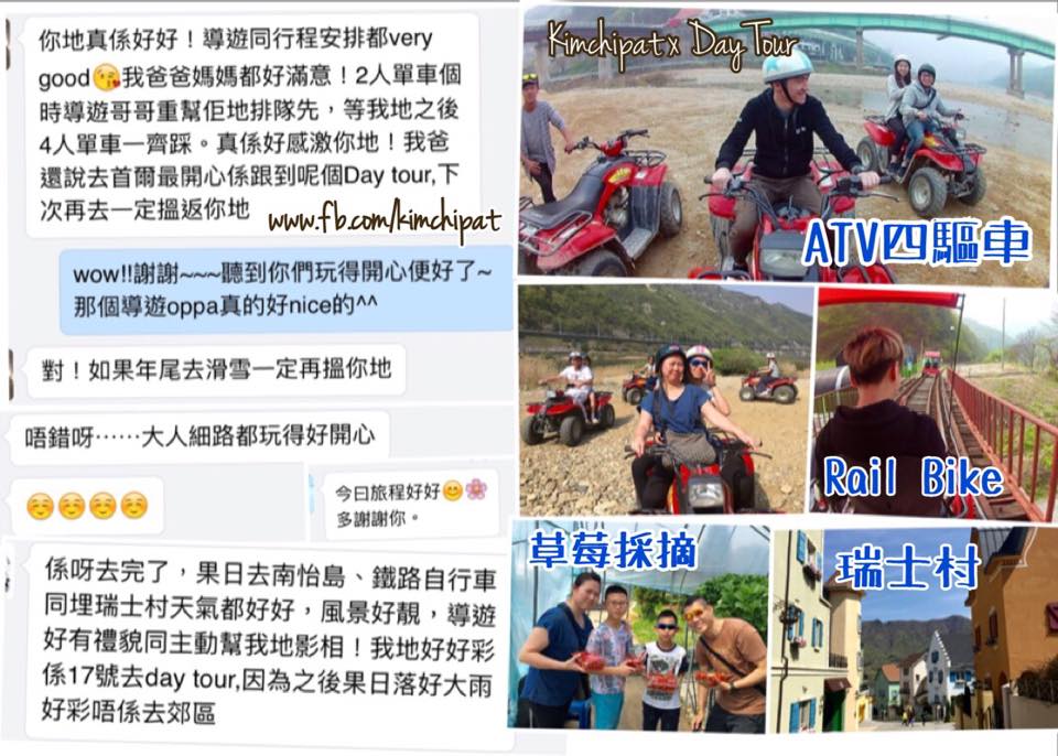 大家先到官網看一下,想去的話也可選做 Private Tour 的其中一個景點,搭其他行程 (草莓採摘 / 南怡島 / 小法國 / 晨靜樹木園 / 鐵路自行車 / ATV四驅車) 等等。