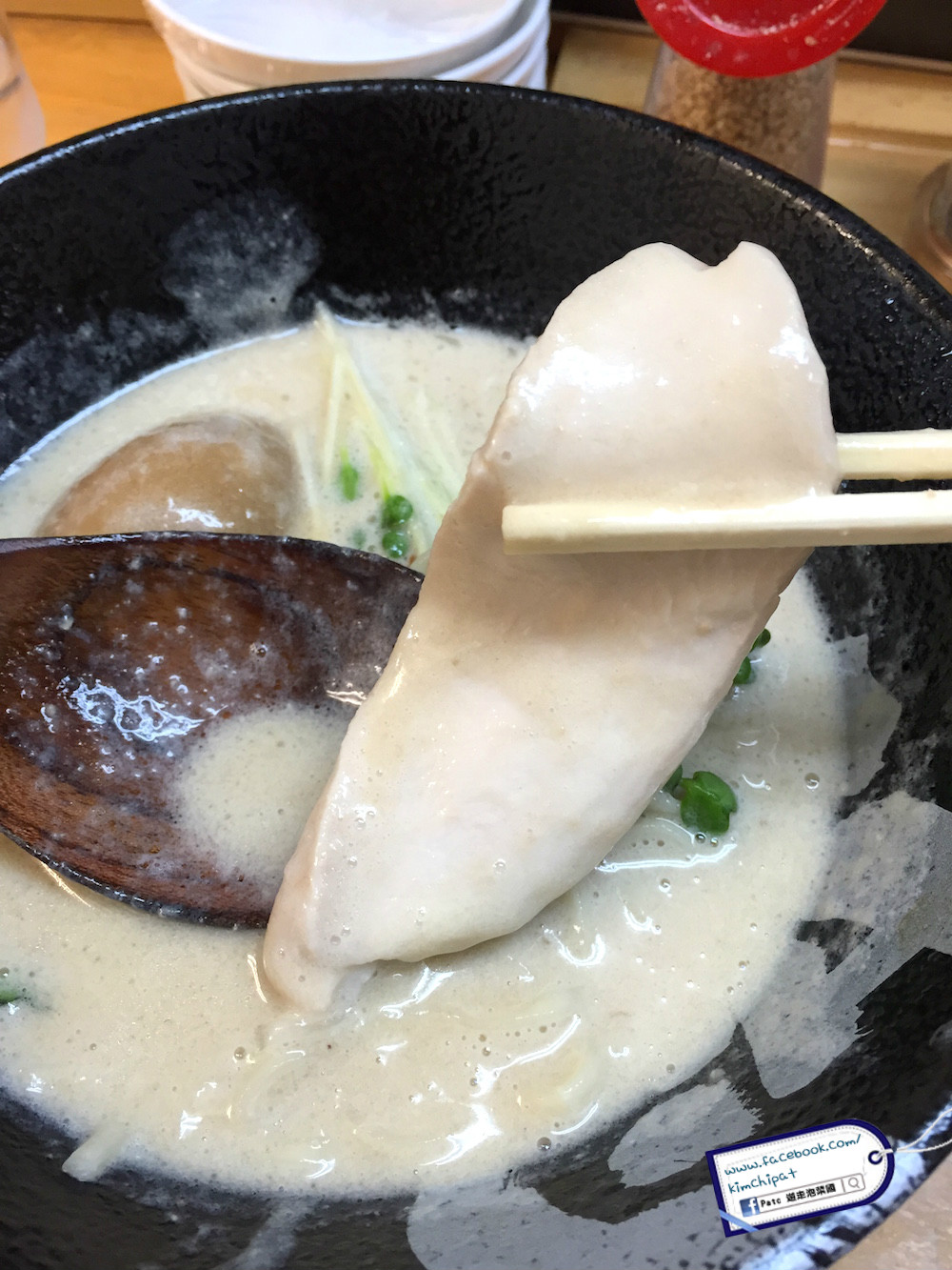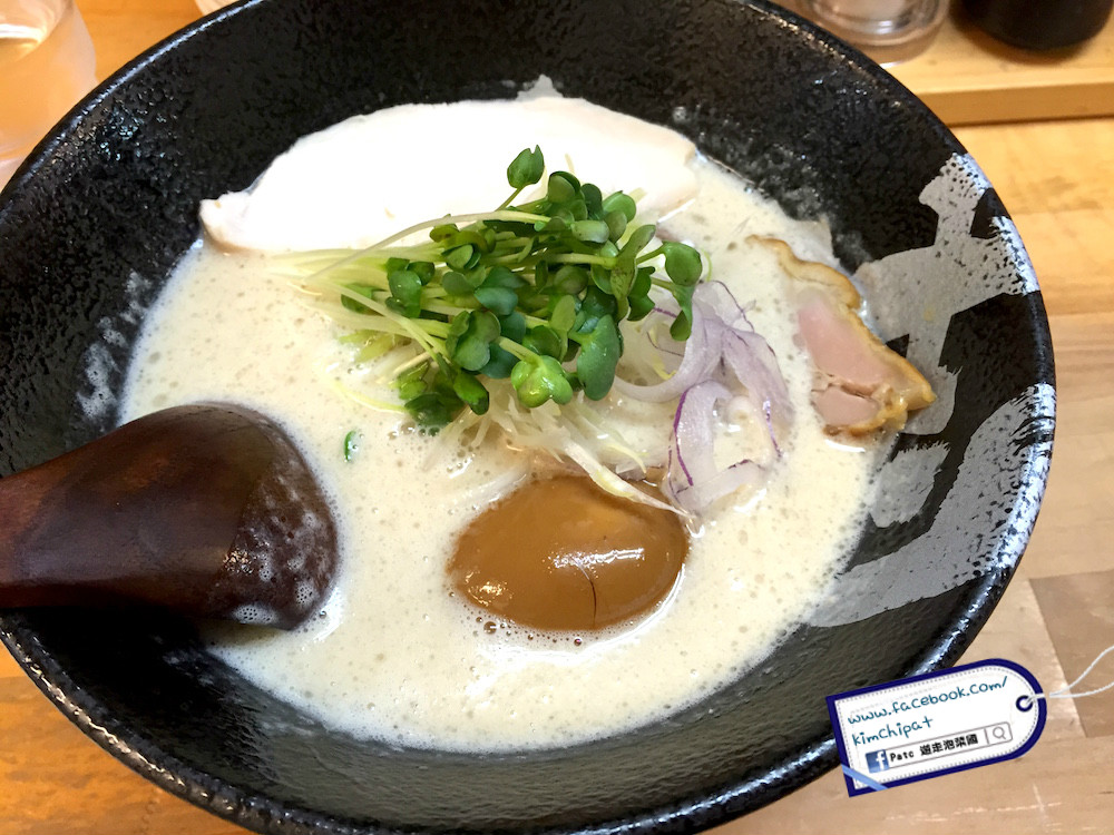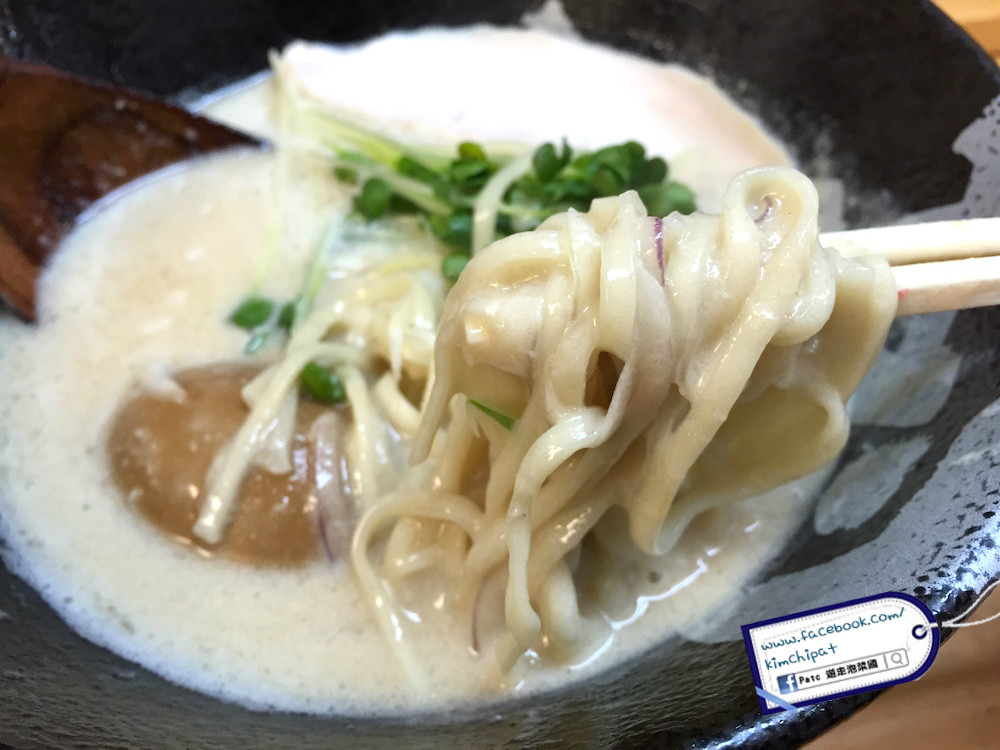 極重口味的特濃雞白湯拉麵,湯頭超濃,稠得像奶油般的雞白湯,是用大量雞肉及豚骨餚製而成,面條是自家制的扁身拉麵,彈牙之餘能充分黏著湯汁,每一口也是稠稠的奶油雞白湯,好吃。