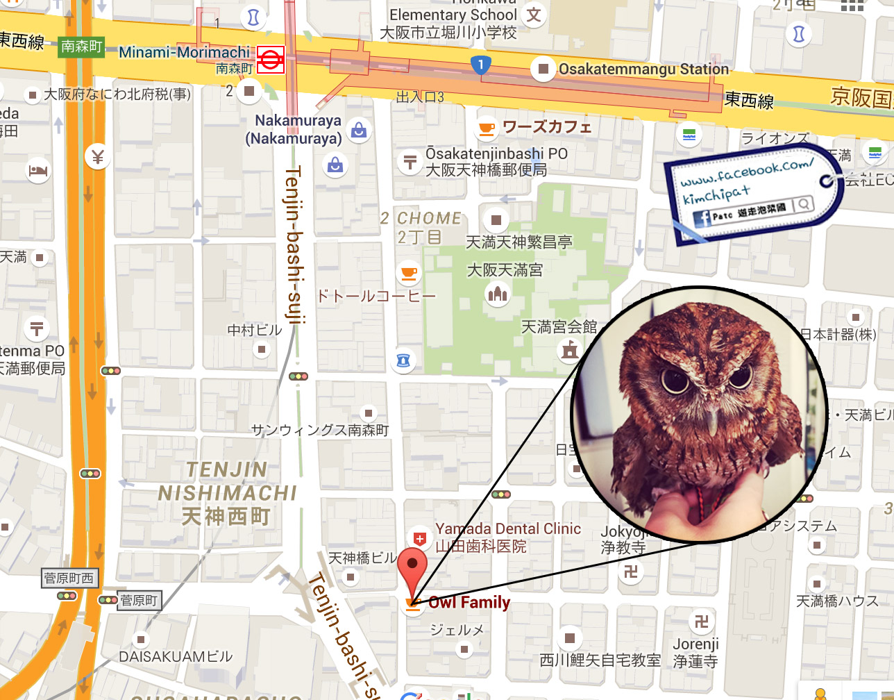 Anyway 貓頭鷹Cafe Owl Family 就在地下鉄堺筋線 南森町駅 徒歩7分便可到達