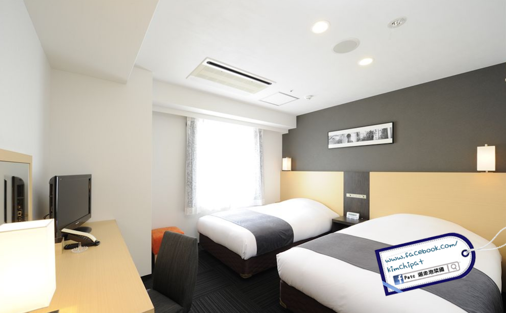 房型方面以2人房為主 (查看所有房型及價錢按我),房型設計都算有點現代感,不算很老派酒店的那種白牆白床杏沙發這樣子,雖然房間不算很大 (日本的其實很少房間會很大),但26寸行李箱也放得下的。