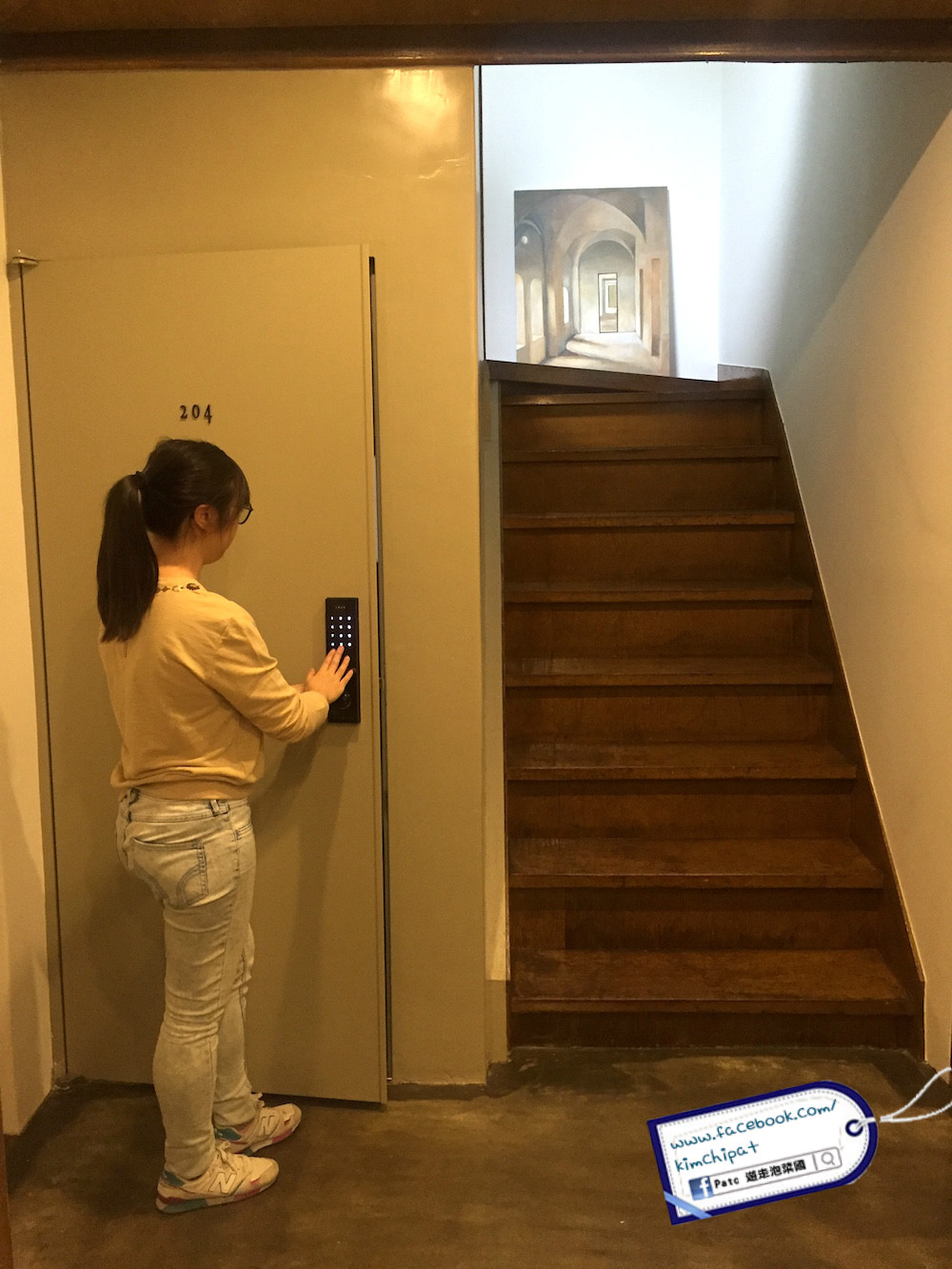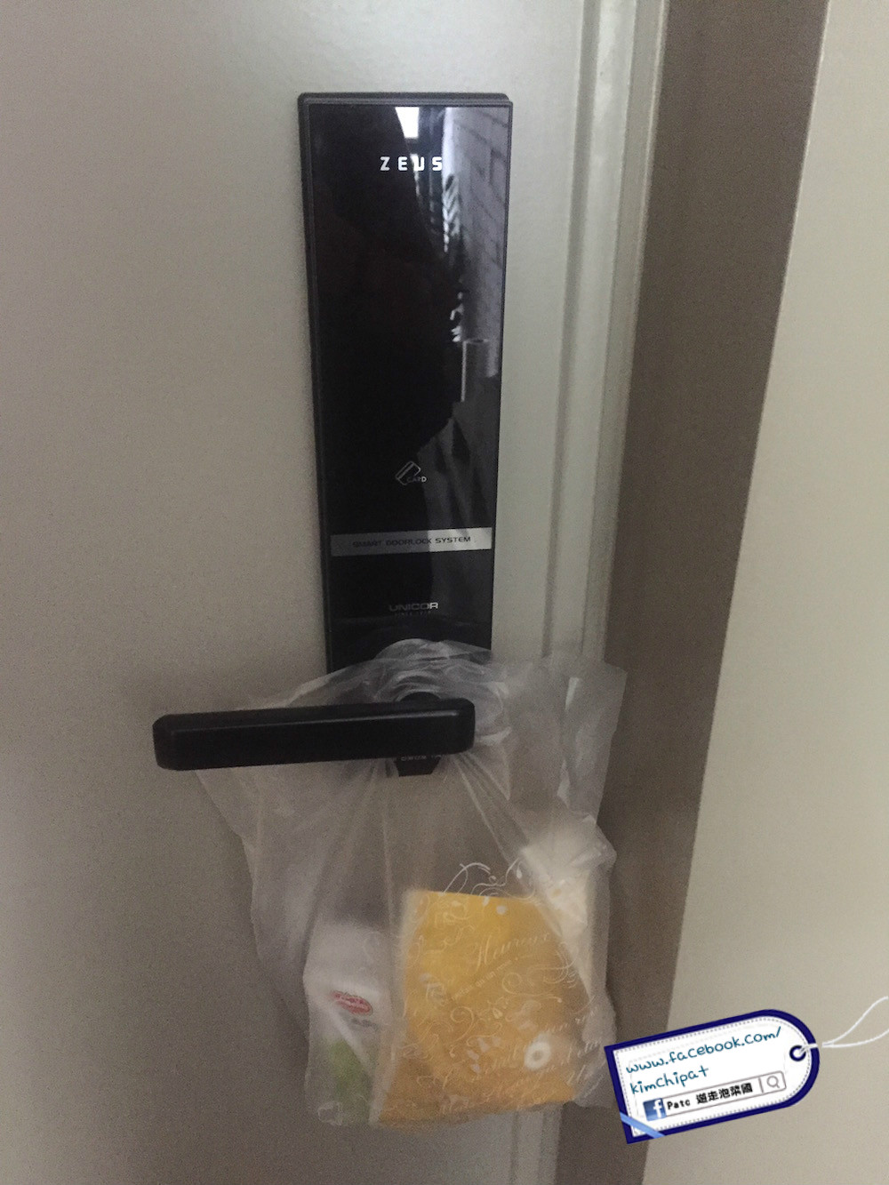 門口是用電子鎖,check in 時職員會幫客人定個自己想要的密碼,就不怕不記得又或找不到房匙的情況。